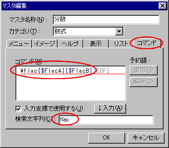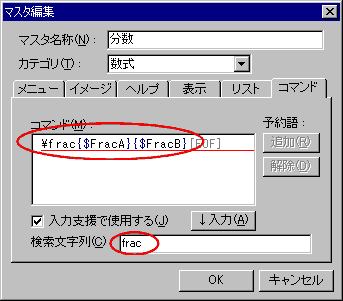 "\flac" を "\frac" へ変更して「OK」、続けて「予約語設定」も「OK」を押す