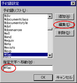 予約語 "\flac" へ移動し「編集」ボタンを押す